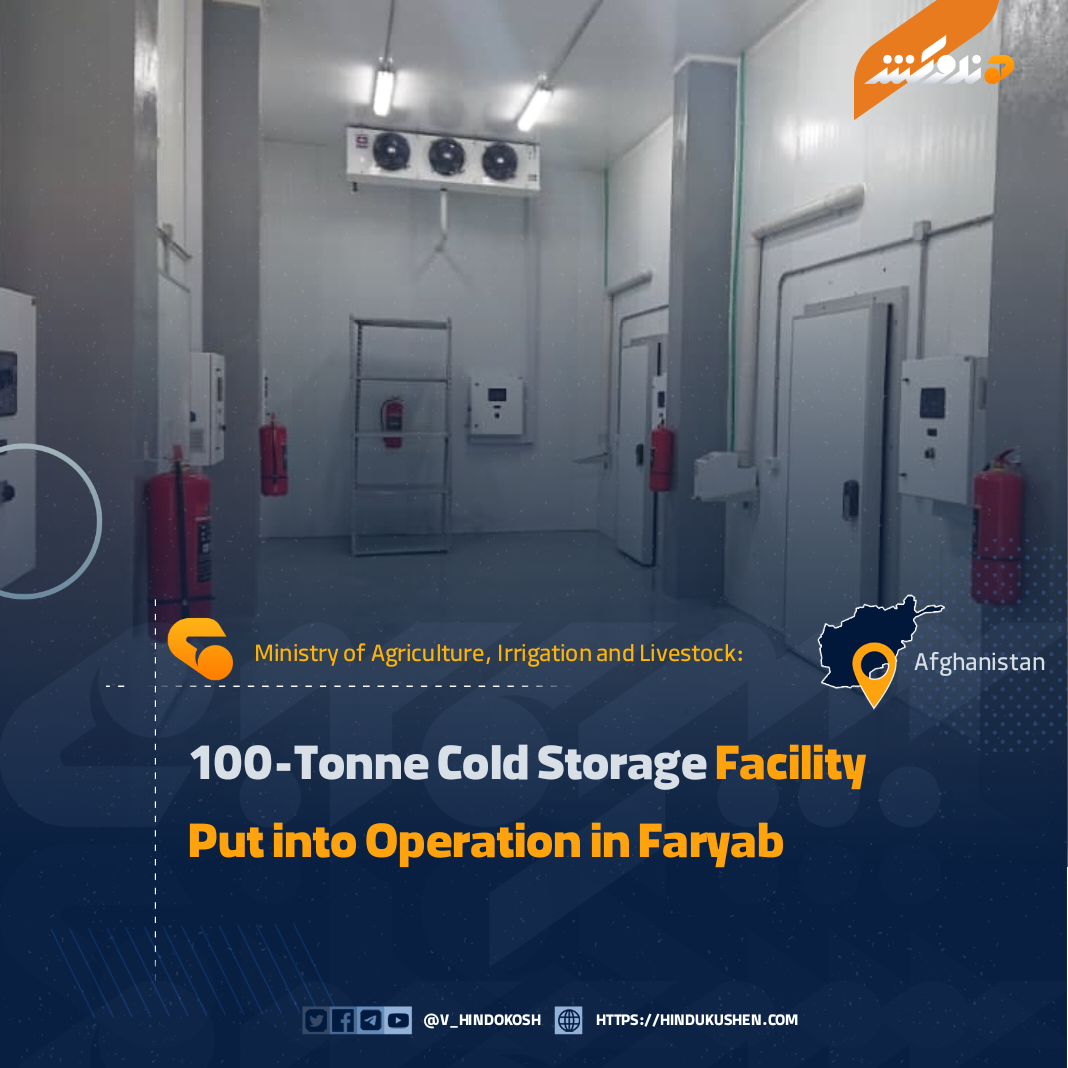 The Ministry of Agriculture, Irrigation and Livestock has announced the completion and official commissioning of a 100-tonne capacity cold storage facility in Maymana, the capital of Faryab province.