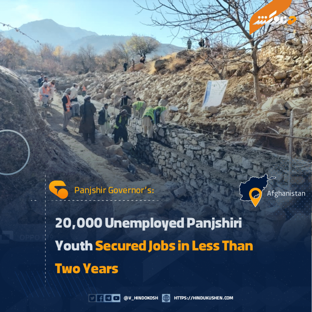 According to sources, in less than two years, 20,000 unemployed youth from Panjshir have been successfully placed in positions in various sectors including military, security forces, and civil authorities.