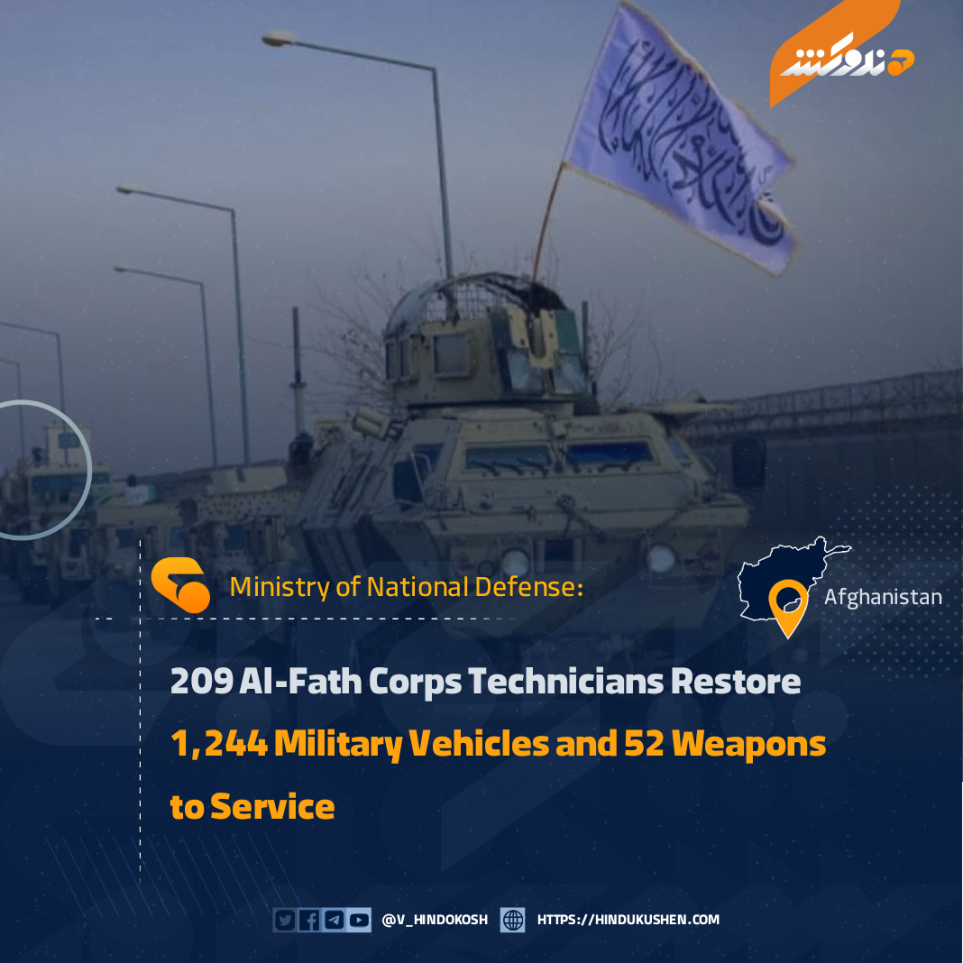 The Ministry of National Defense reports that the technical division of the 209 Al-Fath Corps has repaired and returned 1,244 military vehicles and 52 weapons to full operational status over the past six months.