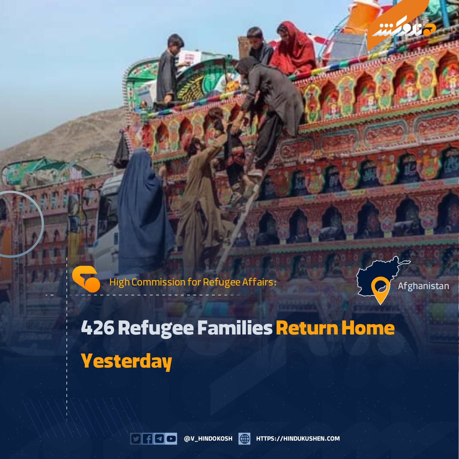 The High Commission for Refugee Affairs announced that yesterday, Tuesday, 426 refugee families, totaling 2,466 individuals, returned to Afghanistan via the Spin Boldak, Torkham, Bahramcha, Wareeshmo Pul, and Islam Qala crossings.