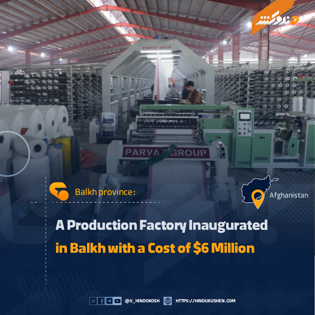 The media office of Balkh province reported that a new factory for the production of sacks and threads has been established and inaugurated in the province at a cost of $6 million.