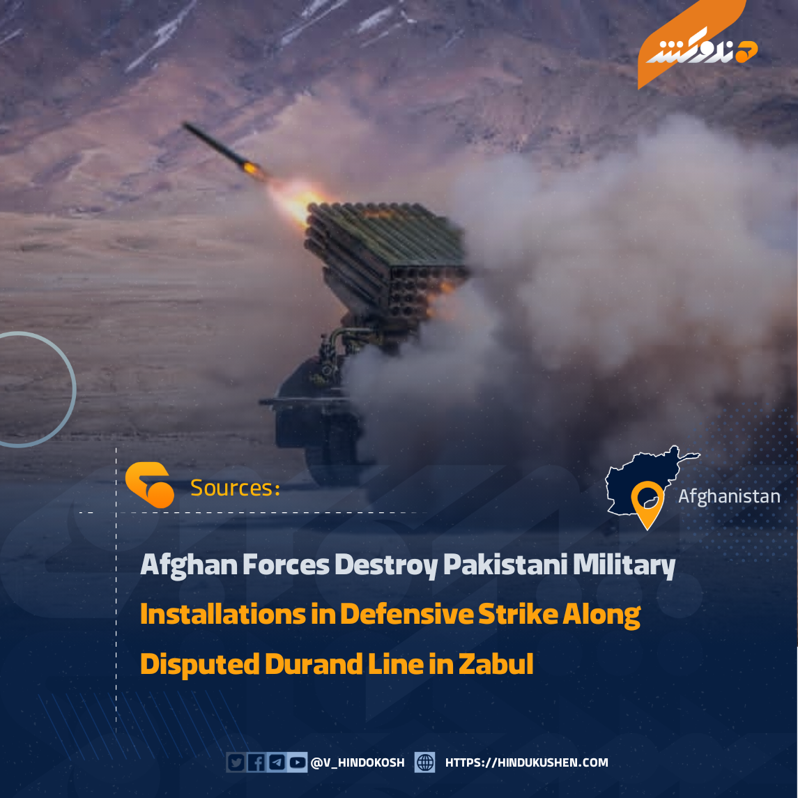 Reliable sources told Voice of Hindukush that Afghan defense forces carried out defensive strikes overnight targeting military installations of the Pakistani regime near the disputed Durand Line, in the Surzangal area of Zabul province.