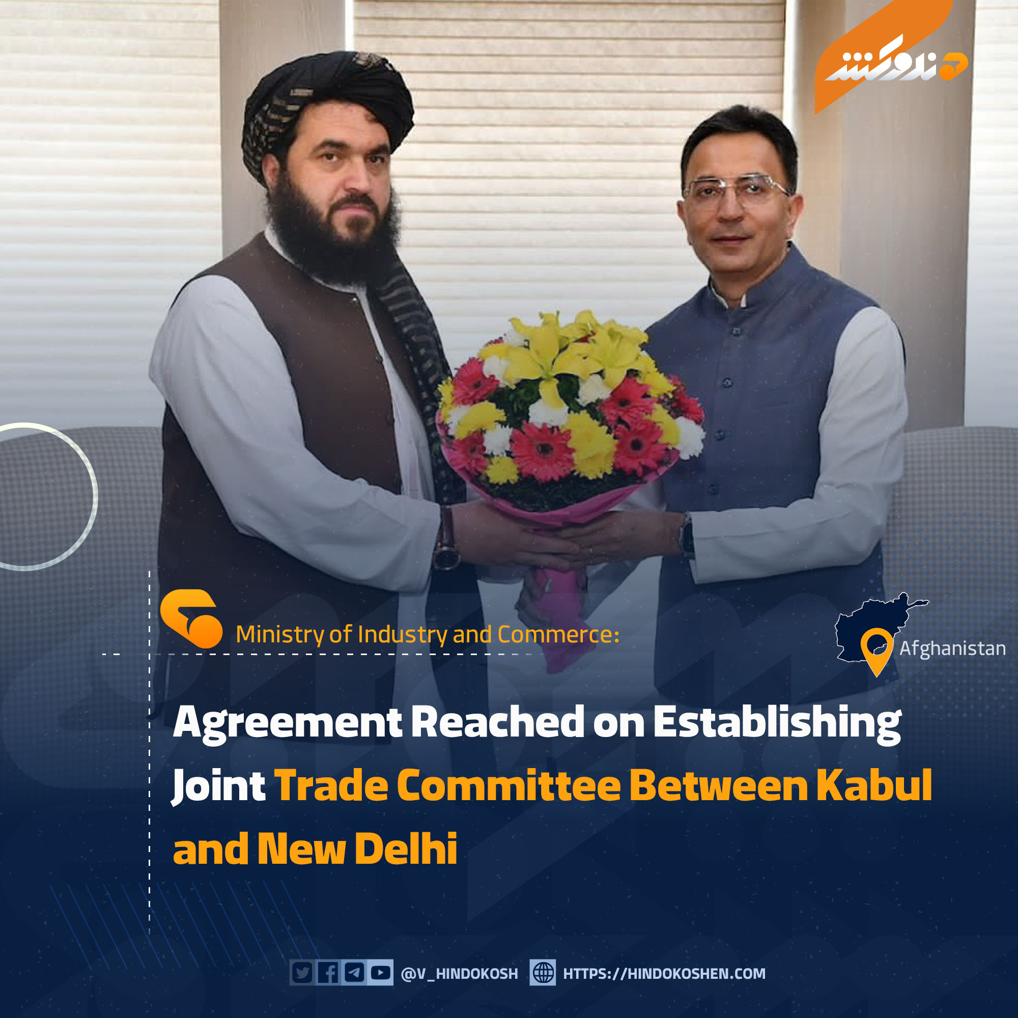 Afghanistan’s Deputy Minister of Industry and Commerce, Mawlawi Ahmadullah Zahid, met with India’s Minister of Industry and Commerce, Jitin Prasada, in New Delhi.