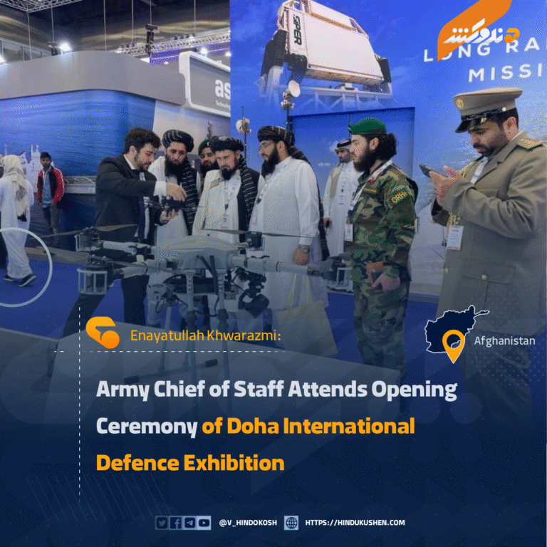 The spokesperson of the Ministry of National Defense, Enayatullah Khwarazmi, said that the Chief of Staff of the country’s armed forces, Qari Fasihuddin Fitrat, attended the opening ceremony of the Doha International Defence Exhibition.