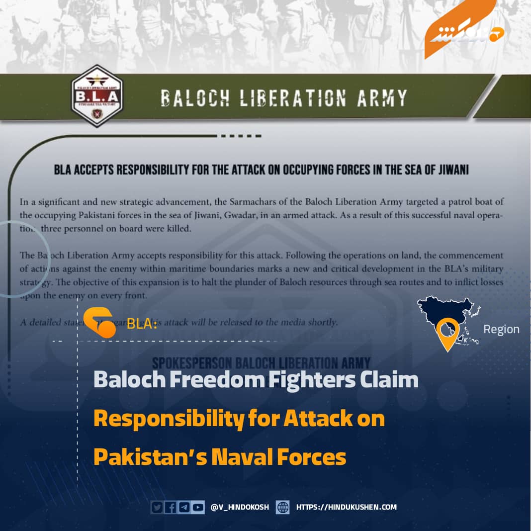 The spokesperson of the Balochistan Liberation Army, Jeeyand Baloch, stated that the aim of extending attacks to the sea is to prevent the exploitation of Balochistan’s natural resources and to inflict damage on the Pakistani regime on multiple fronts.