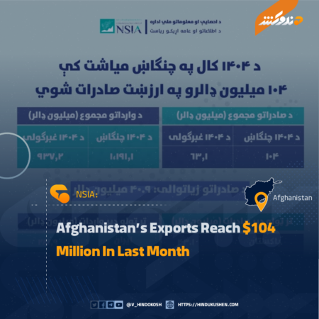 The National Statistics and Information Authority (NSIA) reported that Afghanistan’s total exports reached $104 million…