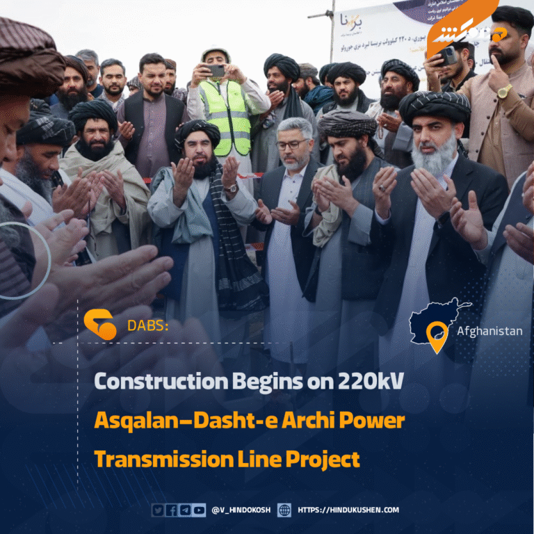 Da Afghanistan Breshna Sherkat (DABS), the state-run electricity company, has launched work on a major 220-kilovolt power transmission project in Kunduz province, connecting the Asqalan substation with Dasht-e Archi district at a cost of 535 million afghanis.