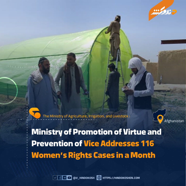 The Ministry of Agriculture, Irrigation, and Livestock announced that construction of 100 greenhouses in Kandahar, valued at nearly 12 million Afghani, is now 40 percent complete.