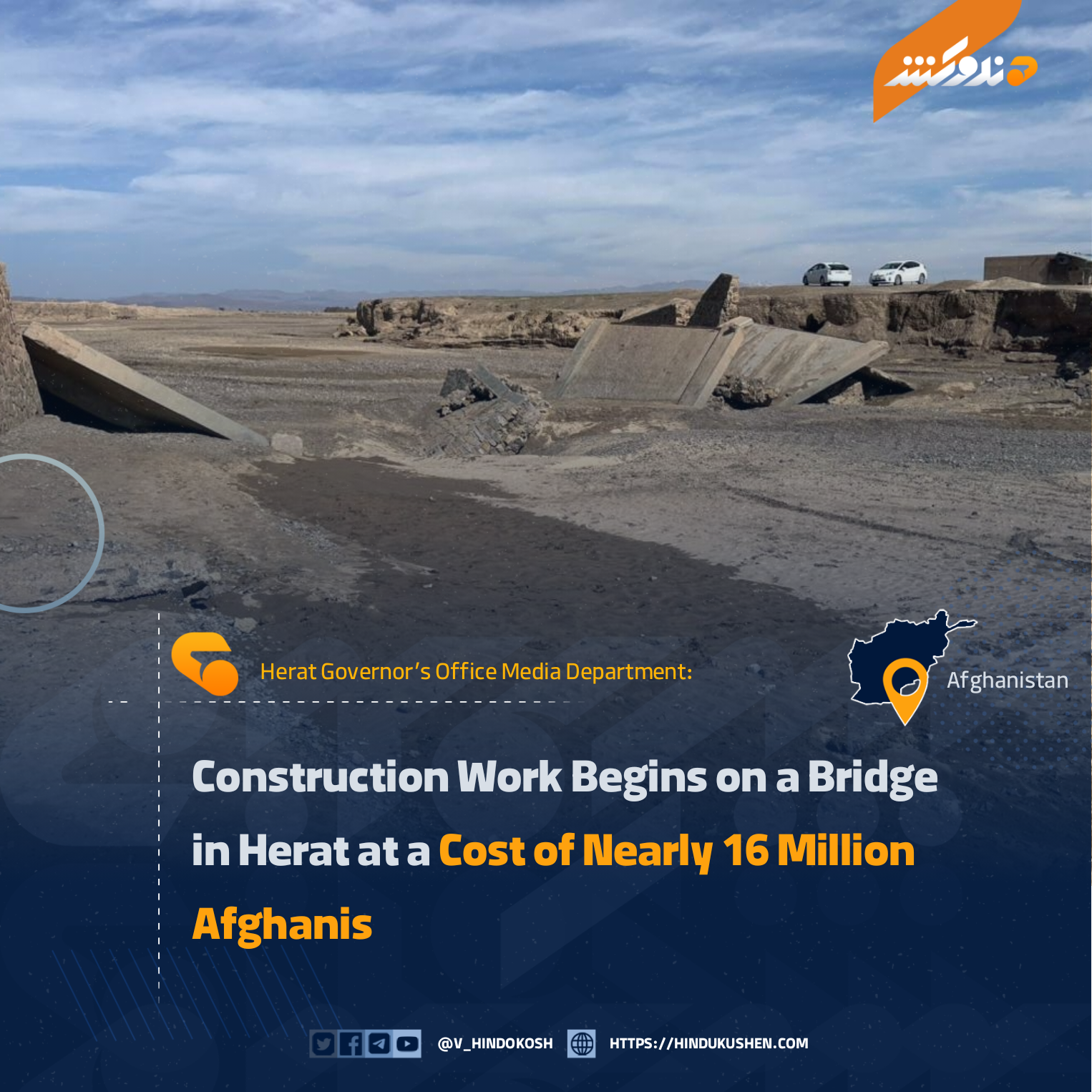 The Herat Governor’s Office Media Department has announced that the reconstruction project of the “Khariman” bridge in Zawol district of the province has commenced at a cost of nearly 16 million Afghanis.