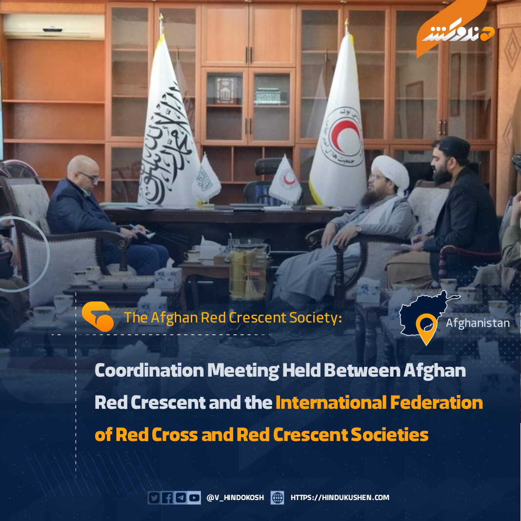 The General President of the Afghan Red Crescent, Sheikh Shahabuddin Delawar, held a coordination meeting with Hosam Faysal, Head of the International Federation of Red Cross and Red Crescent (IFRC) Societies in Afghanistan, aimed at joint humanitarian activities.