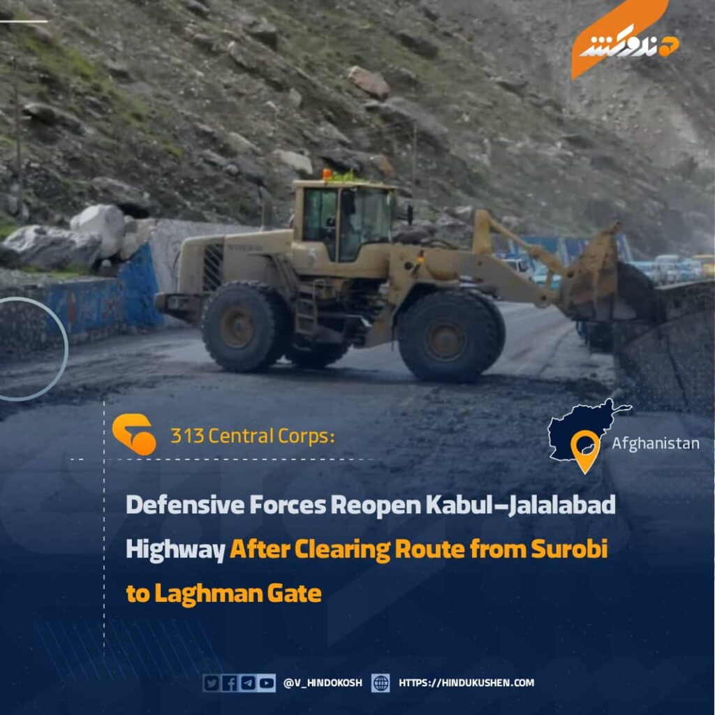 The 313 Central Corps said in a statement that its Third Infantry Brigade cleared debris, sand, and rocks from the Kabul–Jalalabad highway after landslides and flooding disrupted traffic along the route.
