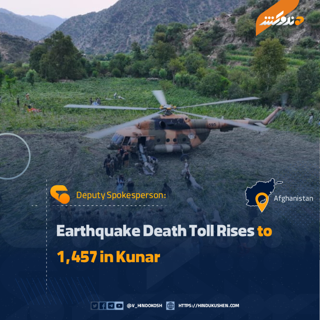 Mullah Hamdullah Fetrat, Deputy Spokesperson of the Islamic Emirate of Afghanistan, stated that the earthquake in Kunar province has claimed 1,457 lives and injured 3,394 people.