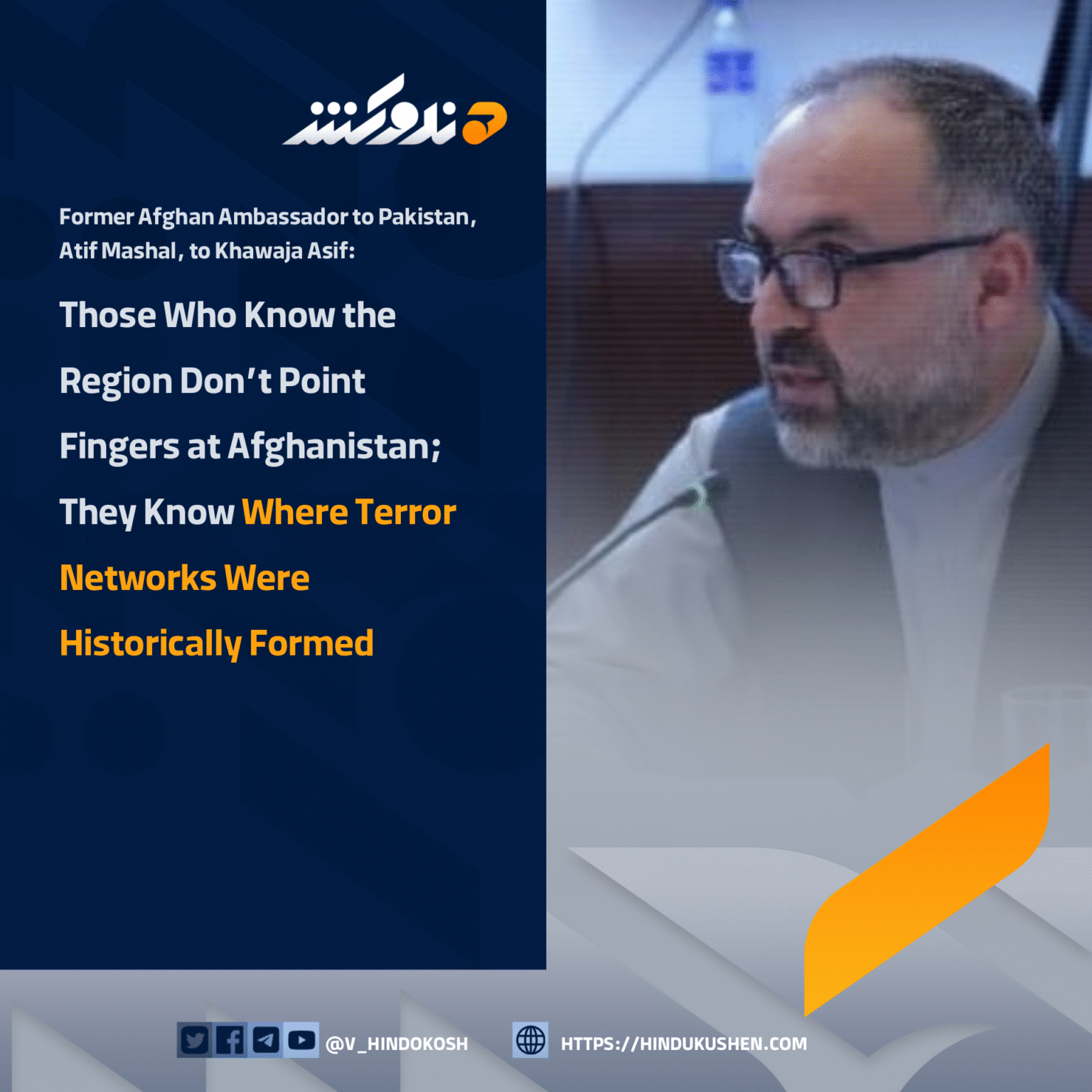 Former Afghan Ambassador to Pakistan, Atif Mashal, responded to Pakistani Military Regime’s Defense Minister Khawaja Asif’s tweet, in which Asif blamed Afghanistan for the killing of Chinese nationals in Tajikistan. Mashal said the international community is well aware of where terrorist networks were historically established.