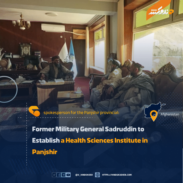 The spokesperson for the Panjshir provincial governor, Saifuddin Latoon, told Voice of Hindukush that General Sadruddin Fakhri, a senior general of the former republic, announced plans to establish a Health Sciences Institute and a fuel pump station in the province during a meeting with Governor Hafiz Mohammad Agha Hakim.