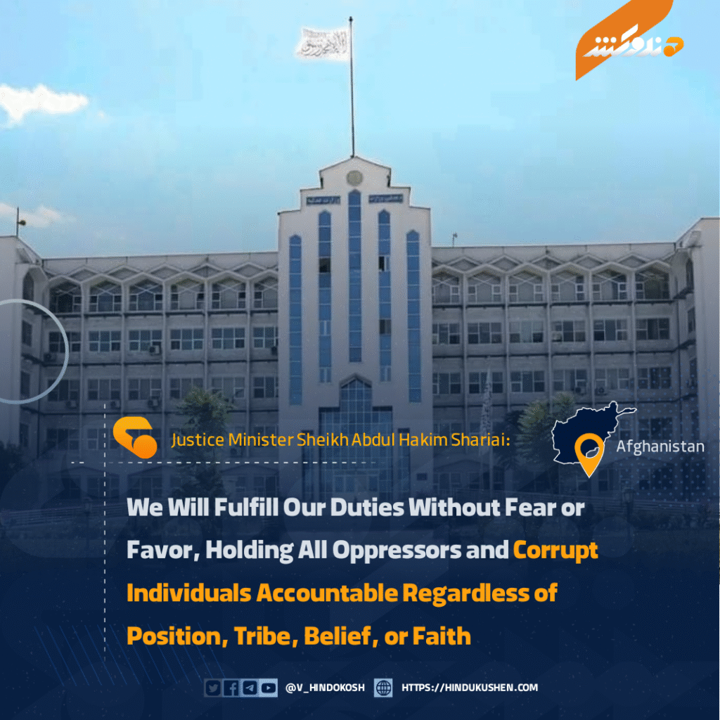 Justice Minister Sheikh Abdul Hakim Shariai: We Will Fulfill Our Duties Without Fear or Favor, Holding All Oppressors and Corrupt Individuals Accountable Regardless of Position, Tribe, Belief, or Faith