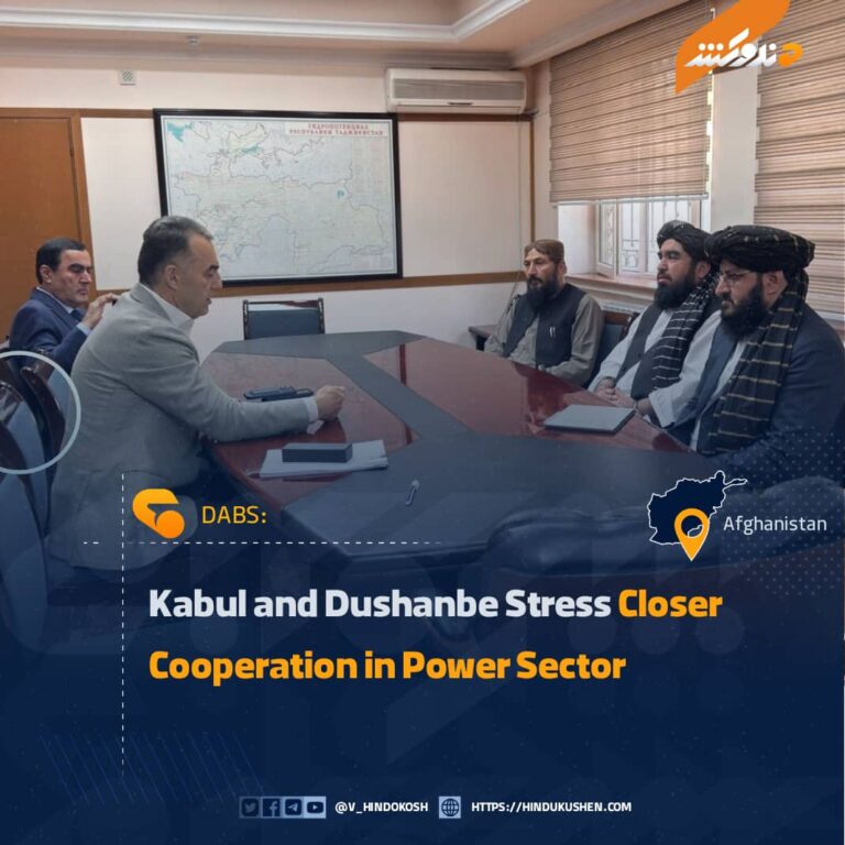 The head of Da Afghanistan Breshna Sherkat (DABS), the state-run electricity company, Mullah Abdul Haq Hamkar, met with Tajikistan’s Minister of Energy, Daler Juma, during an official visit to the country.