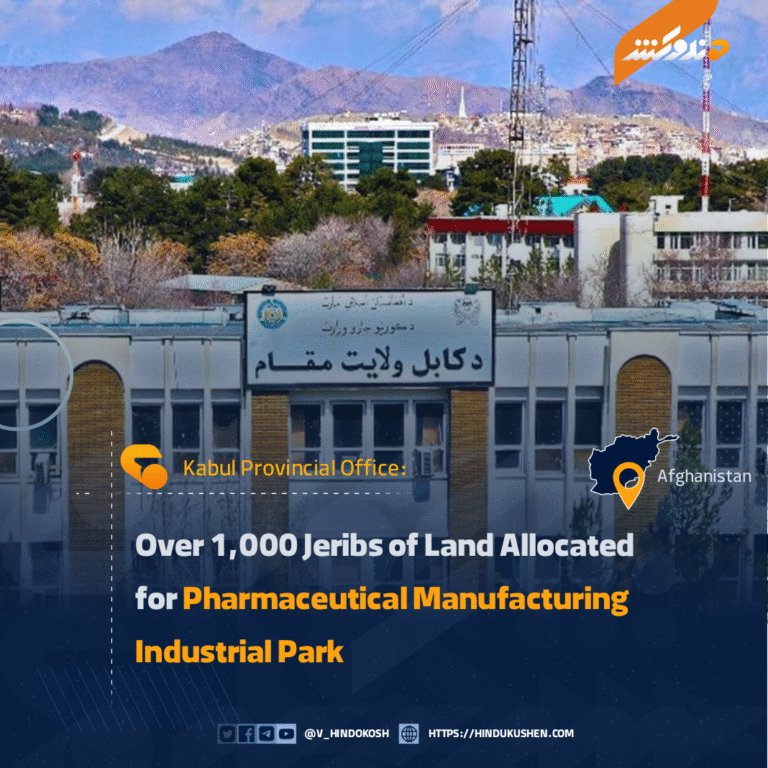 Kabul provincial media office reported that 1,116 jeribs of land owned by the Land Directorate in Mir Bacha Kot district have been allocated to the Ministry of Public Health for the construction of a standardized industrial park for pharmaceutical manufacturing.