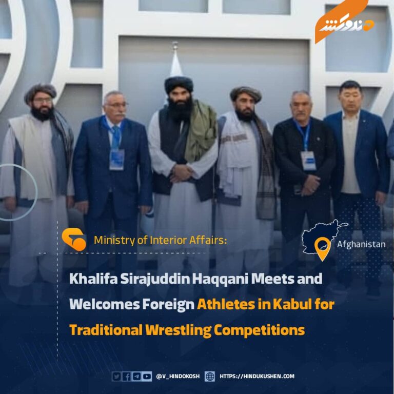 The Ministry of Interior Affairs reported that Khalifa Sirajuddin Haqqani met in Kabul with participants of the international traditional wrestling competitions and extended a formal welcome to them to Afghanistan