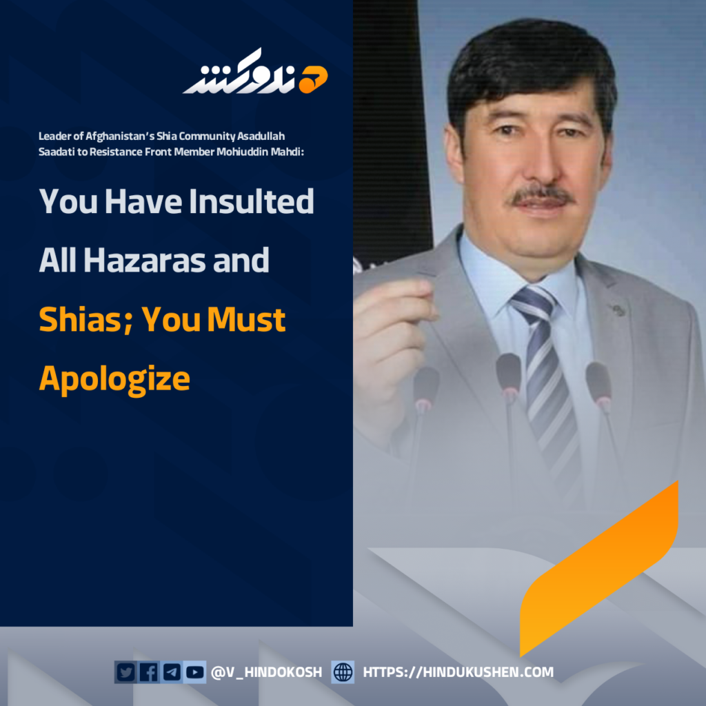 Asadullah Saadati, a leading figure of Afghanistan’s Shia community and former Daikundi representative in the fallen republic’s parliament, strongly condemned remarks by Resistance Front member Mohiuddin Mahdi, in which Mahdi denied Afghan identity and insulted the Hazara community. Saadati called on Mahdi to take his statements back and issue a formal apology.