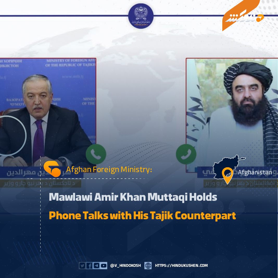 Afghanistan’s Foreign Minister, Mawlawi Amir Khan Muttaqi, and Tajikistan’s Foreign Minister, Sirajuddin Mehrodeen, held a telephone conversation discussing political ties, economic collaboration, border security, and regional initiatives between Kabul and Dushanbe.