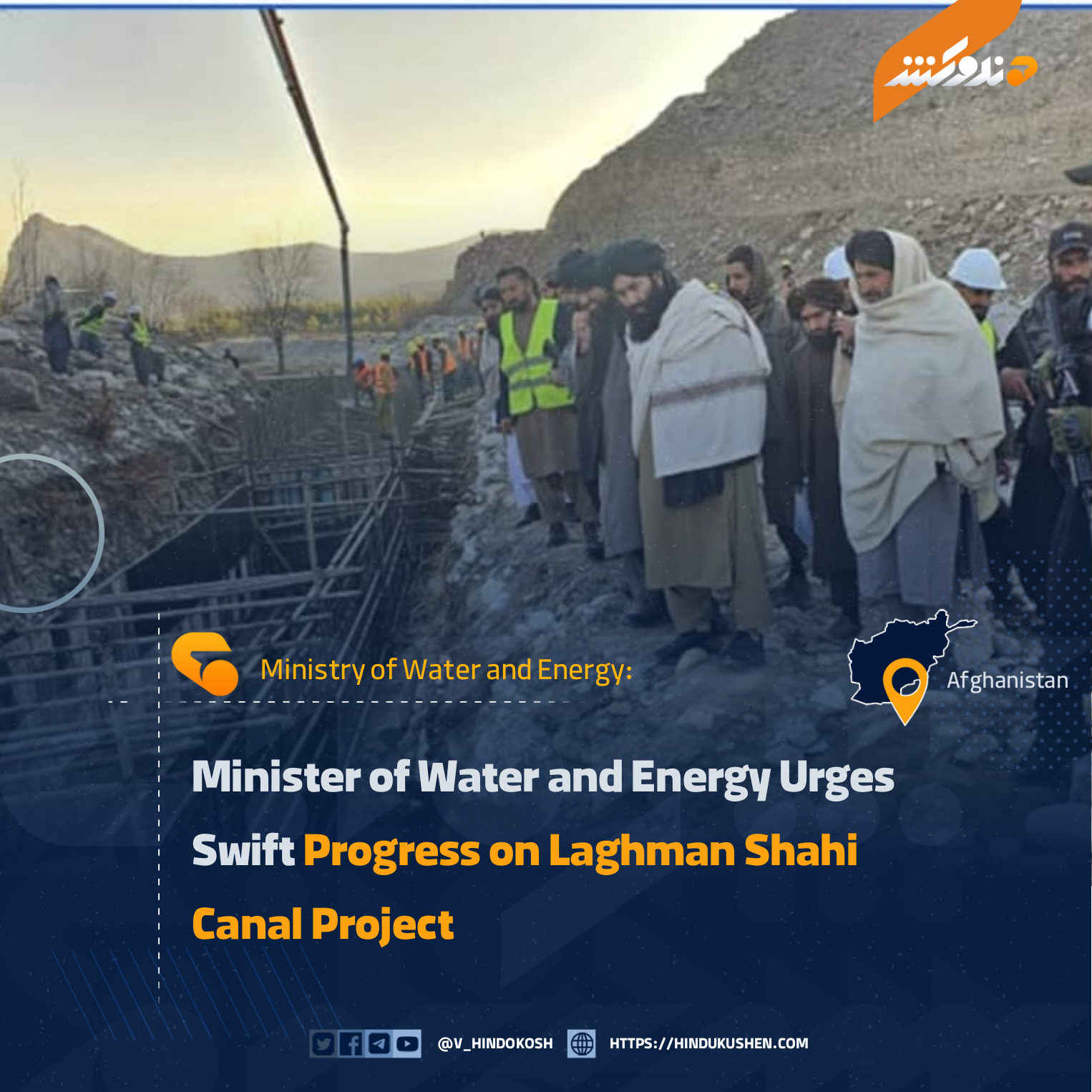 Mullah Mohammad Younus Akhundzada, Minister of Water and Energy, visited the ongoing Laghman Shahi Canal project, stressing the need for faster progress and high-quality execution.