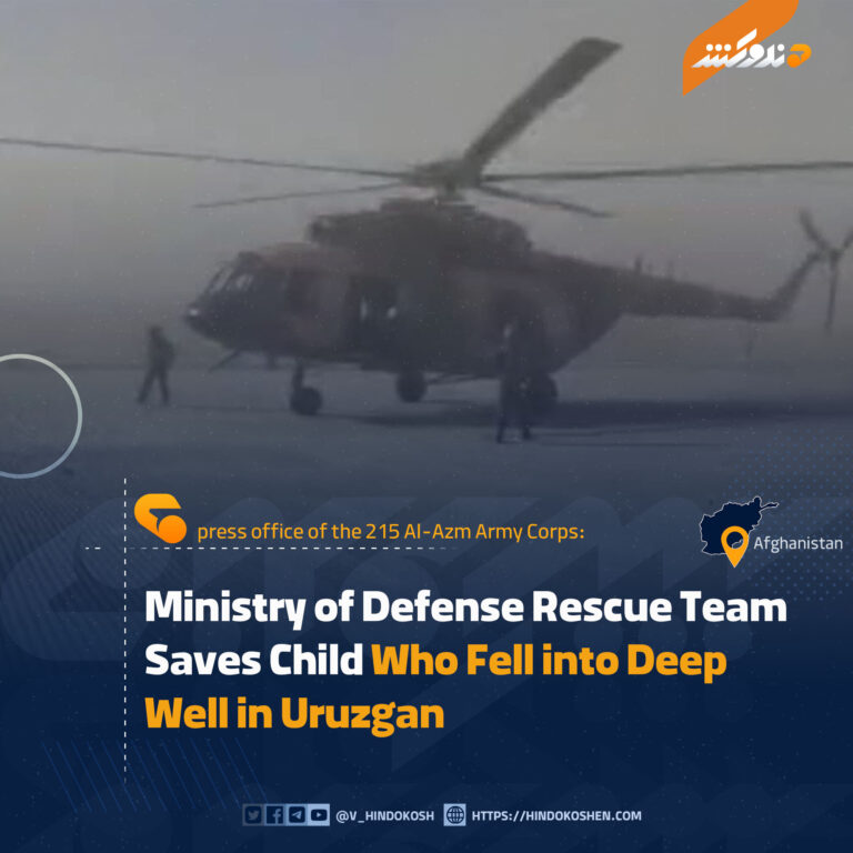 The press office of the 215 Al-Azm Army Corps stated that the rescue team of the Ministry of National Defense saved a five-year-old child who had fallen into a deep well in Tarinkot, the capital of Uruzgan province.