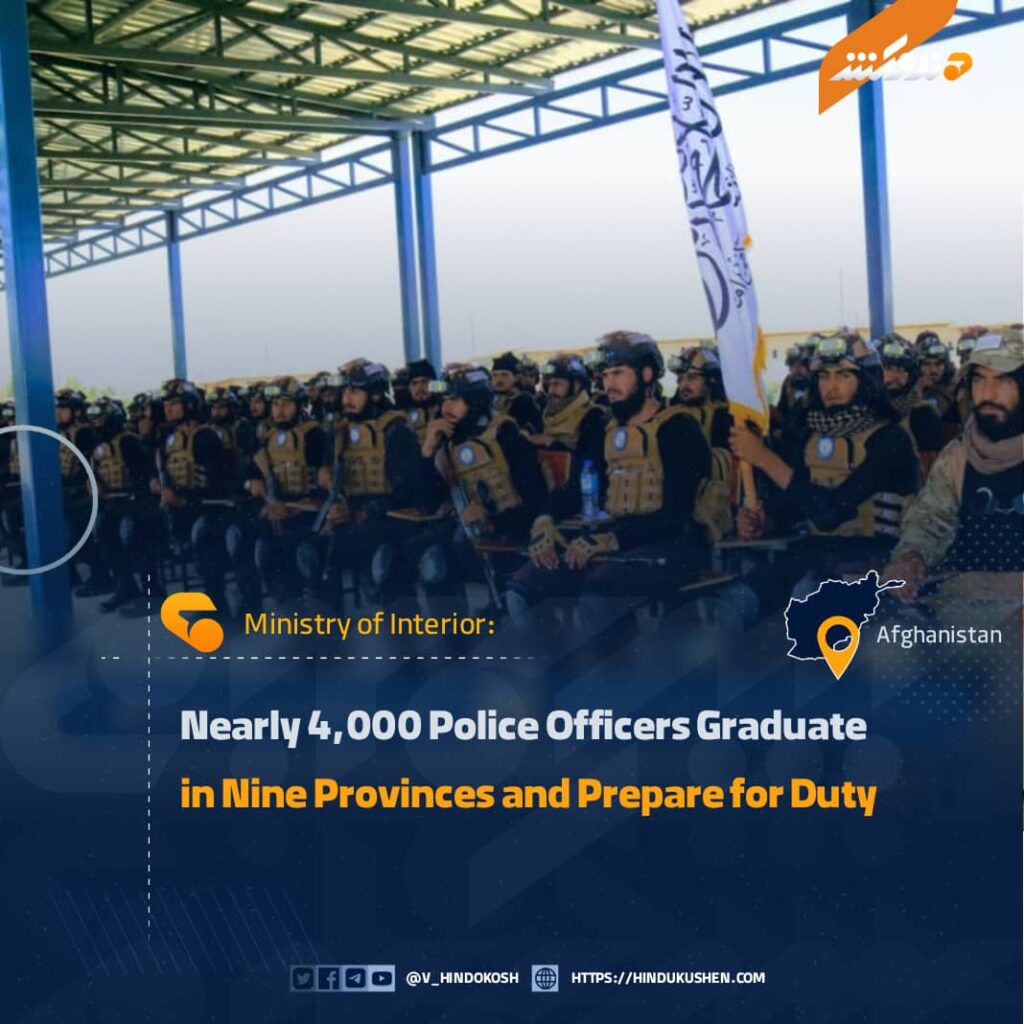 The Ministry of Interior announced that 3,761 police officers have completed a two-month program of professional and ideological training in nine provinces including, Balkh, Helmand, Nangarhar, Parwan, Herat, Paktia, Kunduz, Kandahar, and Maidan Wardak.