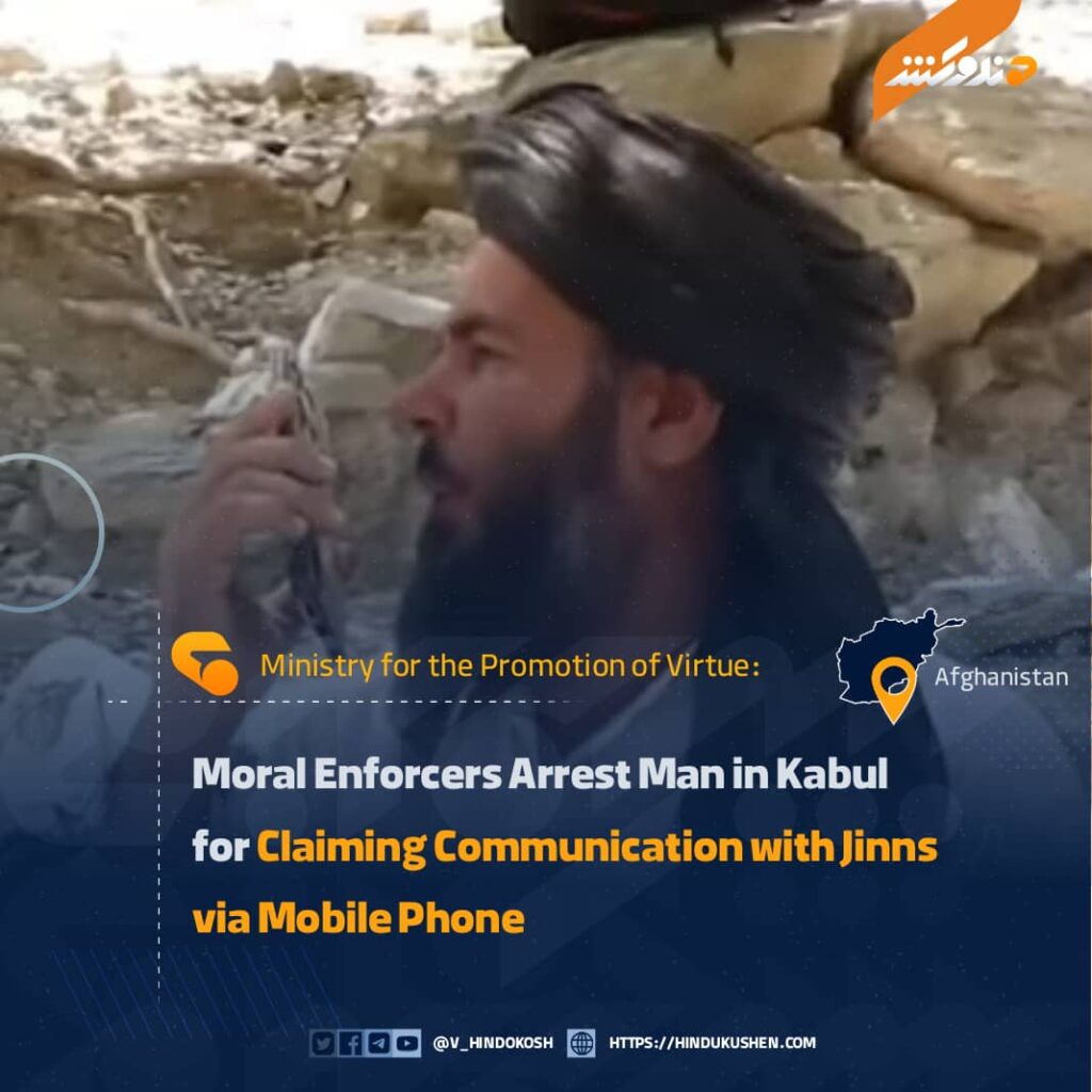 Mawlawi Saif-ul-Islam Khyber, spokesperson for the Ministry for the Promotion of Virtue and Prevention of Vice and the Hearing of Complaints, said that officials in Kabul’s Surobi district arrested a man who claimed he could communicate with jinns through a mobile phone.