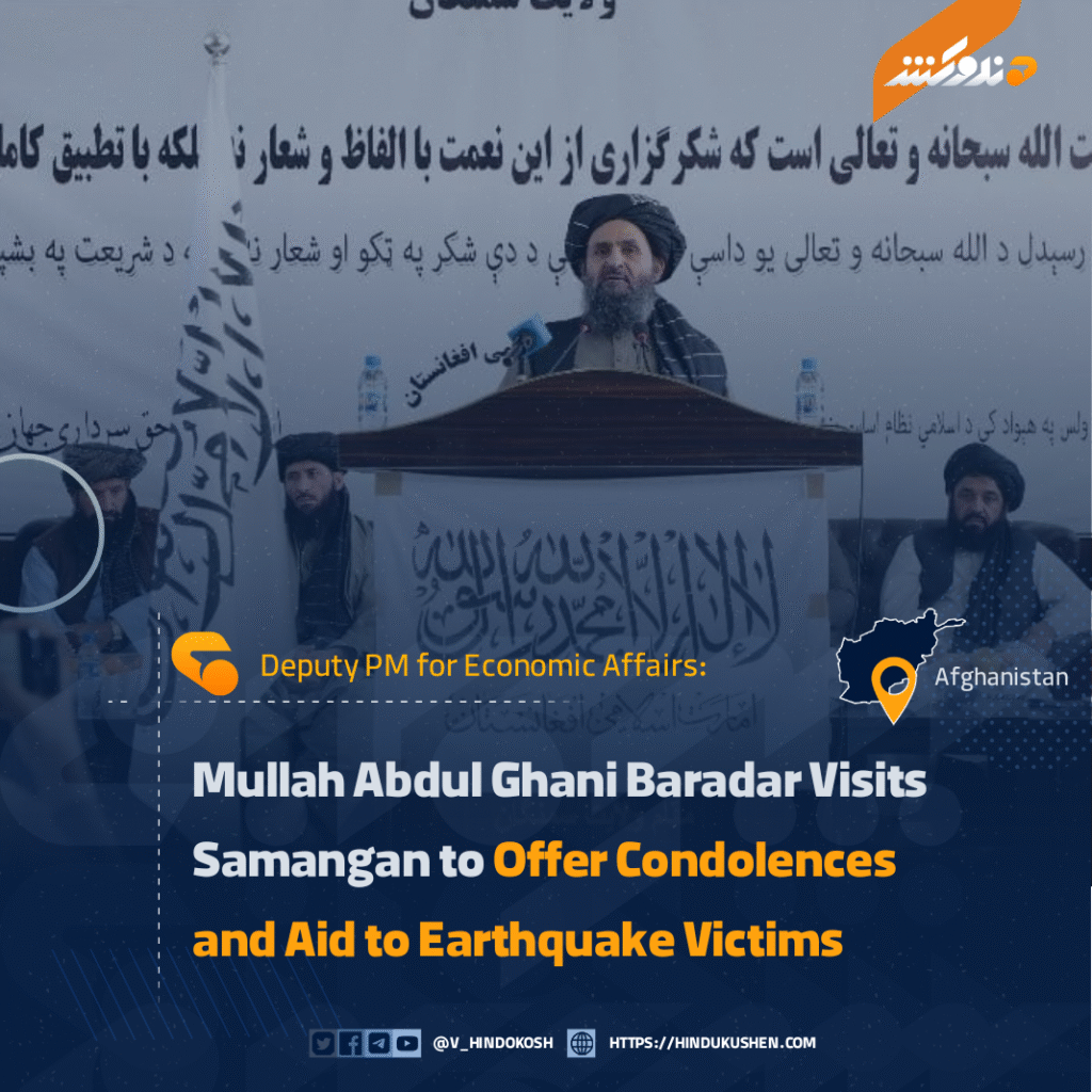 Mullah Abdul Ghani Baradar, the Deputy Prime Minister for Economic Affairs, visited Samangan province to meet with earthquake victims and extend his condolences and support.