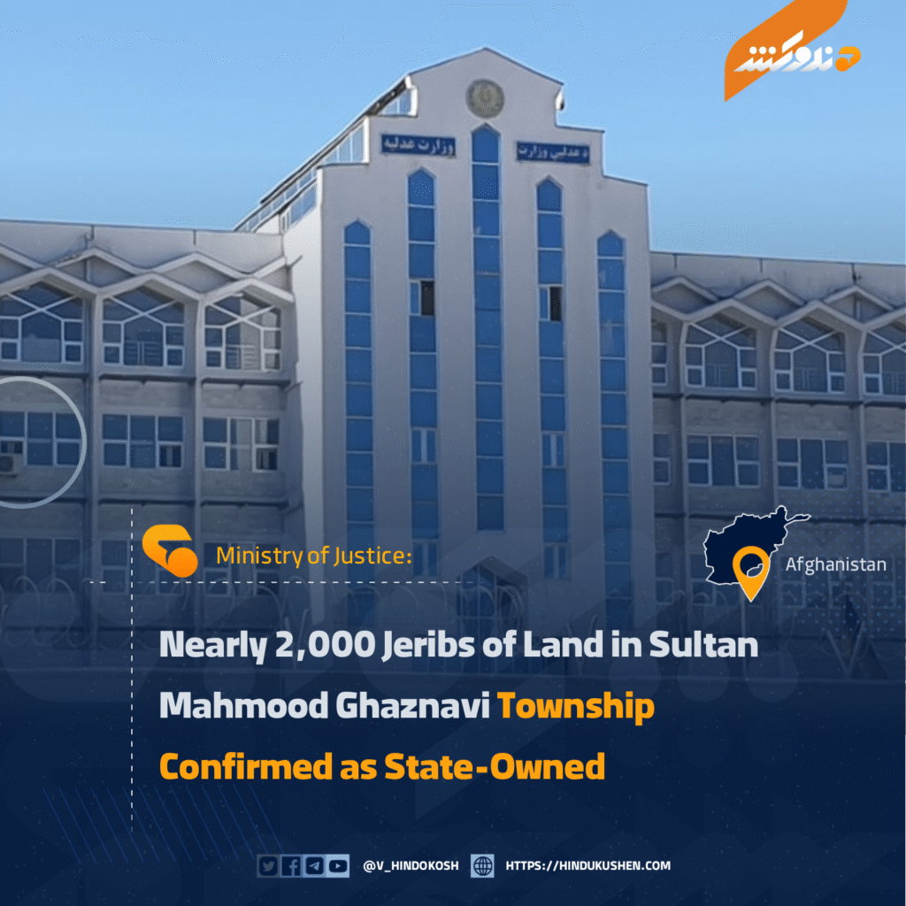 The Ministry of Justice has announced that 1,730 jeribs of land in a township named Sultan Mahmood Ghaznavi in Ghazni province have been officially confirmed as state-owned.