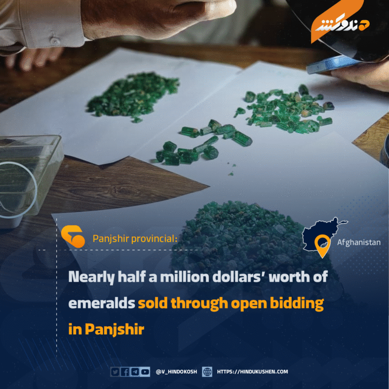 According to a statement from the Panjshir provincial media office, 8,628 carats of emeralds extracted from local mines were sold through open bidding for close to half a million U.S. dollars.