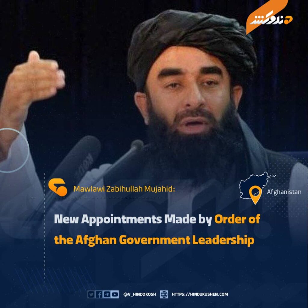 The spokesperson of the Afghan government, Mawlawi Zabihullah Mujahid, stated that by order of the leadership, the former Head of Kandahar’s Fourth Security District, Mawlawi Musa Kalim Abu Nasr, has been appointed as the Chief Police Commander of Takhar, and the former deputy of the 203 Mansouri Corps, Mullah Rooh-ul-Amin Roohani, has been appointed as the commander of the Support Brigade of the Ministry of Defense.