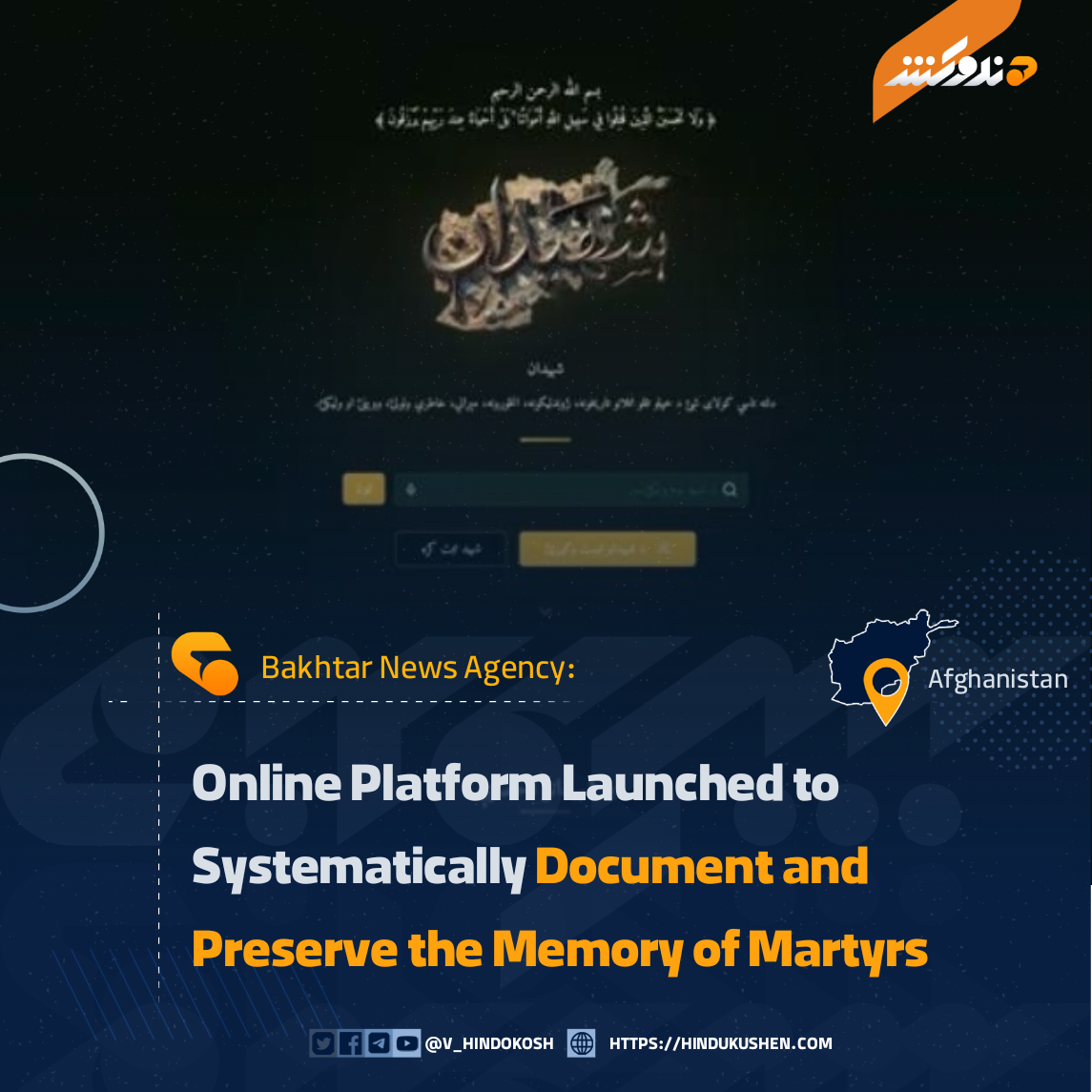 Bakhtar News Agency reports that it has officially launched an online platform for registering martyrs, following several months of continuous work aimed at systematically preserving their sacrifices and historical record.