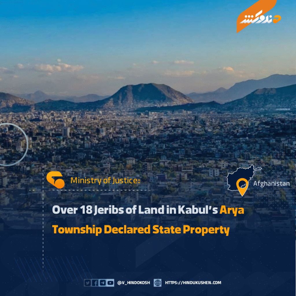 The Ministry of Justice announced that more than 18 jeribs of land in the first and second phases of Kabul’s Arya Township, located in the city’s 10th district, have been officially recognized as state property.
