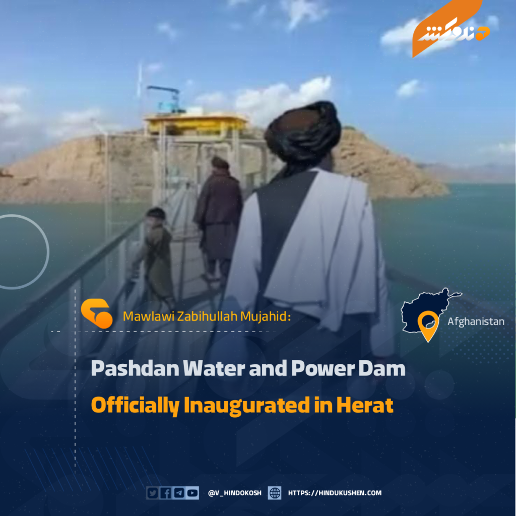 Mawlawi Zabihullah Mujahid, spokesperson for Afghanistan’s interim government, announced the official inauguration of the Pashdan Water and Power Dam in Herat province. The ceremony was attended by Deputy Prime Minister for Economic Affairs Mullah Abdul Ghani Baradar, Acting Minister of Water and Energy Mullah Abdul Latif Mansour, and other senior officials.