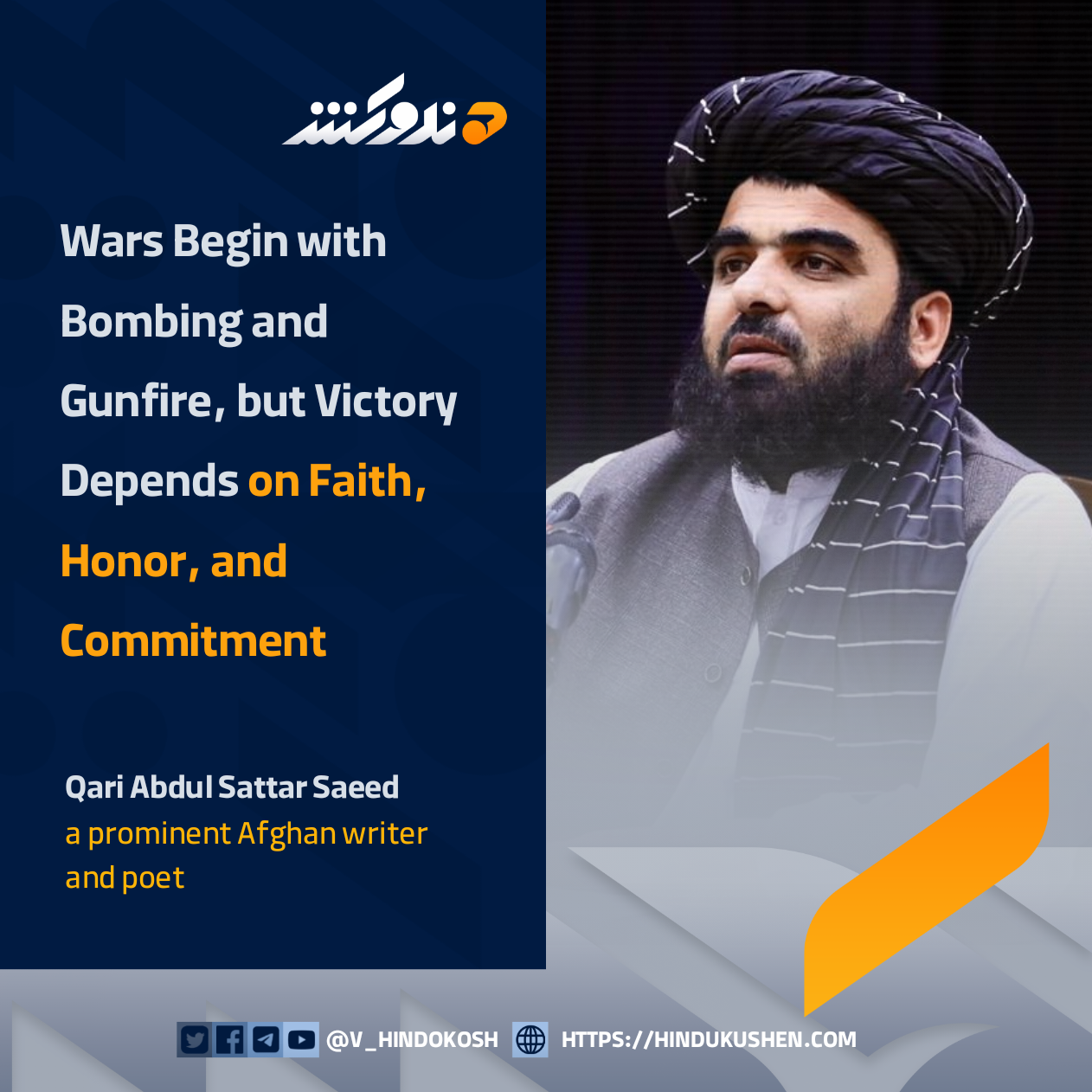 Qari Abdul Sattar Saeed, a prominent Afghan writer and poet, noted that while wars begin with bombings and gunfire, their true outcomes are determined by faith, honor, determination, and unwavering commitment.