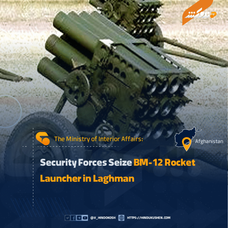 The Ministry of Interior Affairs reported that Laghman’s special forces discovered and confiscated a BM-12 rocket launcher during an intelligence operation in Qarghayu district.