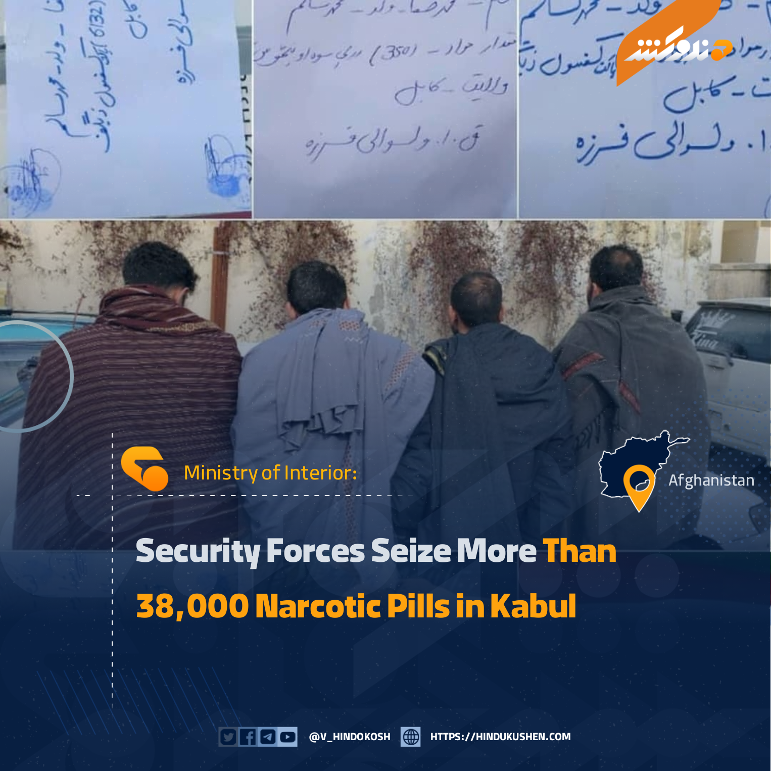 The Ministry of Interior says that counter-narcotics police, during operations within the jurisdiction of Kabul city, discovered and confiscated 38,200 narcotic pills and 23 kilograms of hashish.