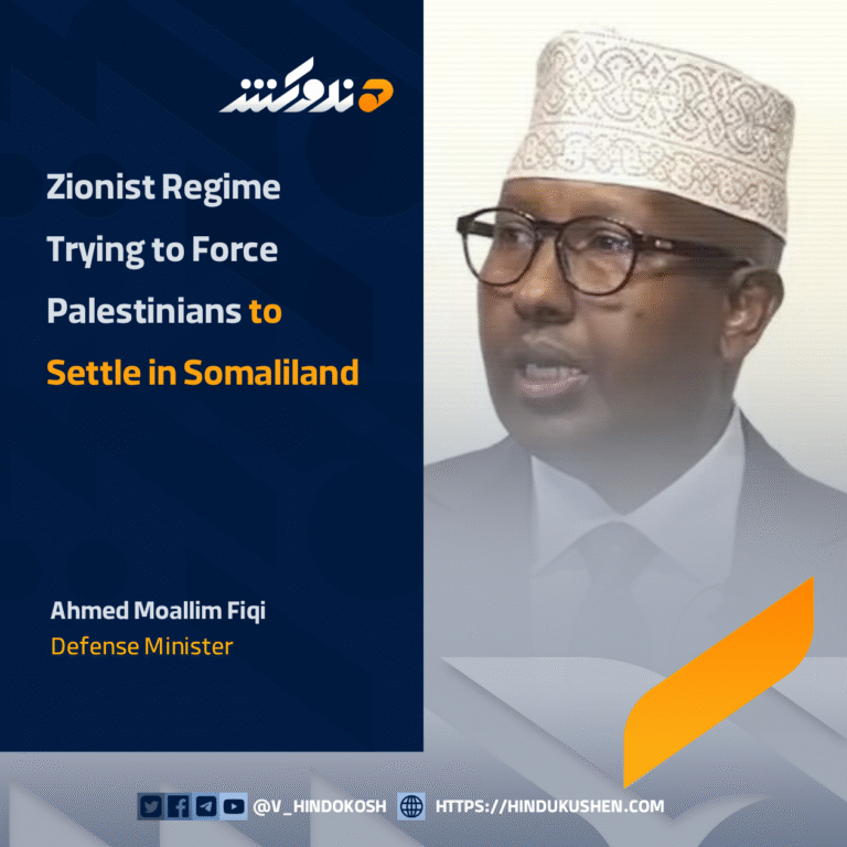 Somalia’s Defense Minister, Ahmed Moallim Fiqi, stated that the Zionist regime is attempting to forcibly relocate Palestinians to Somaliland.