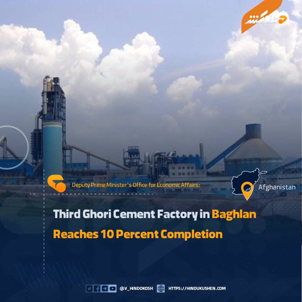 The Deputy Prime Minister’s Office for Economic Affairs reported that, under the oversight of the National Development Company, construction of Baghlan’s third Ghori Cement Factory has reached 10 percent completion.