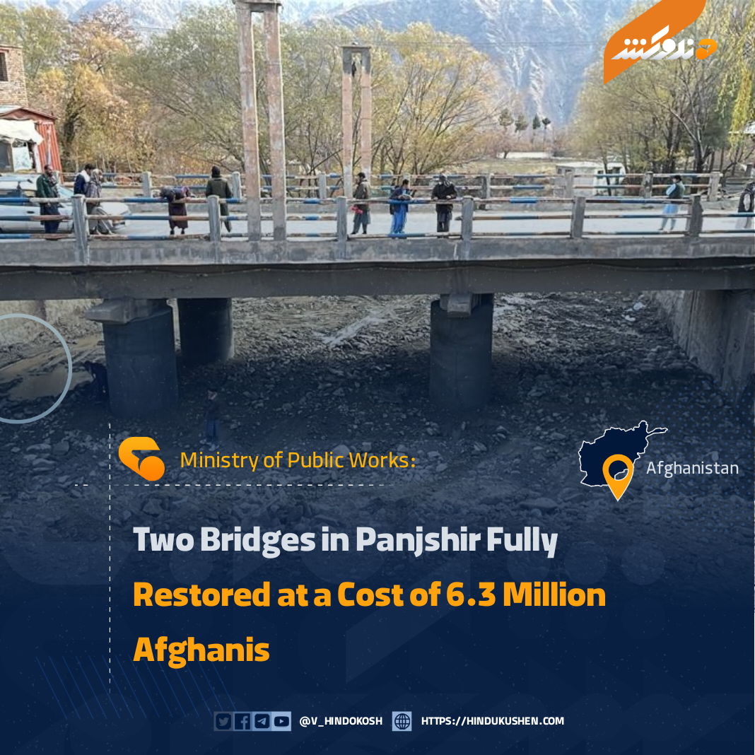 The Ministry of Public Works has finished repairing and reconstructing two beam bridges in Rukha District, Panjshir Province, at a total cost of 6.3 million Afghanis. Both bridges have now been reopened, improving access for local residents.