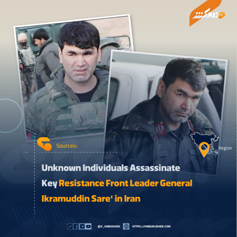 Information obtained by Voice of Hindukush indicates that unknown armed individuals shot and killed General Ikramuddin Sare’, a key leader of the Resistance Front, at around 9 PM tonight in Tehran, the capital of Iran.