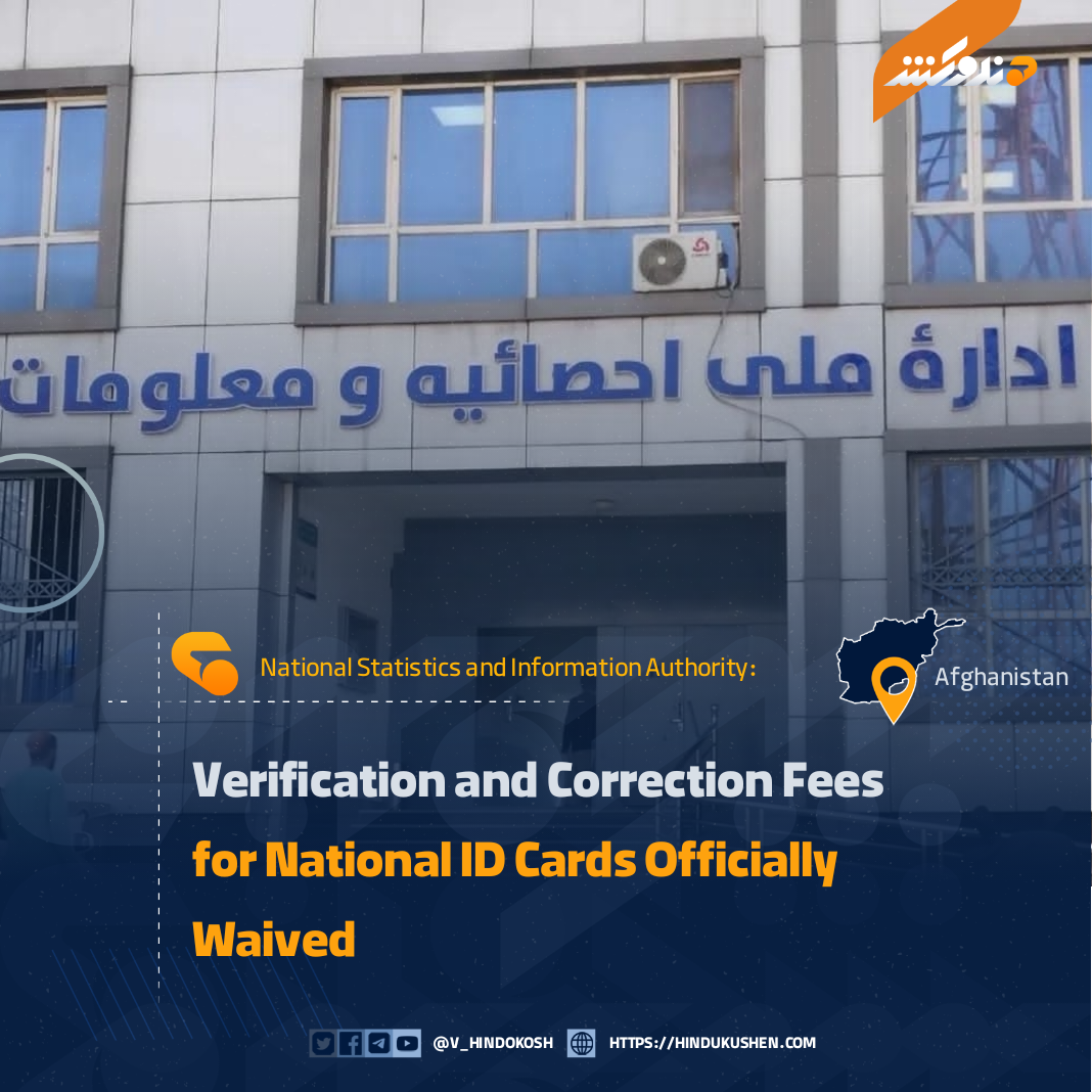 The National Statistics and Information Authority has announced that, under a special directive issued by the leadership of the Afghan government, fees for verifying citizenship ID cards have been officially waived to improve public access to services, and all verification services related to national ID cards will now be provided free of charge.